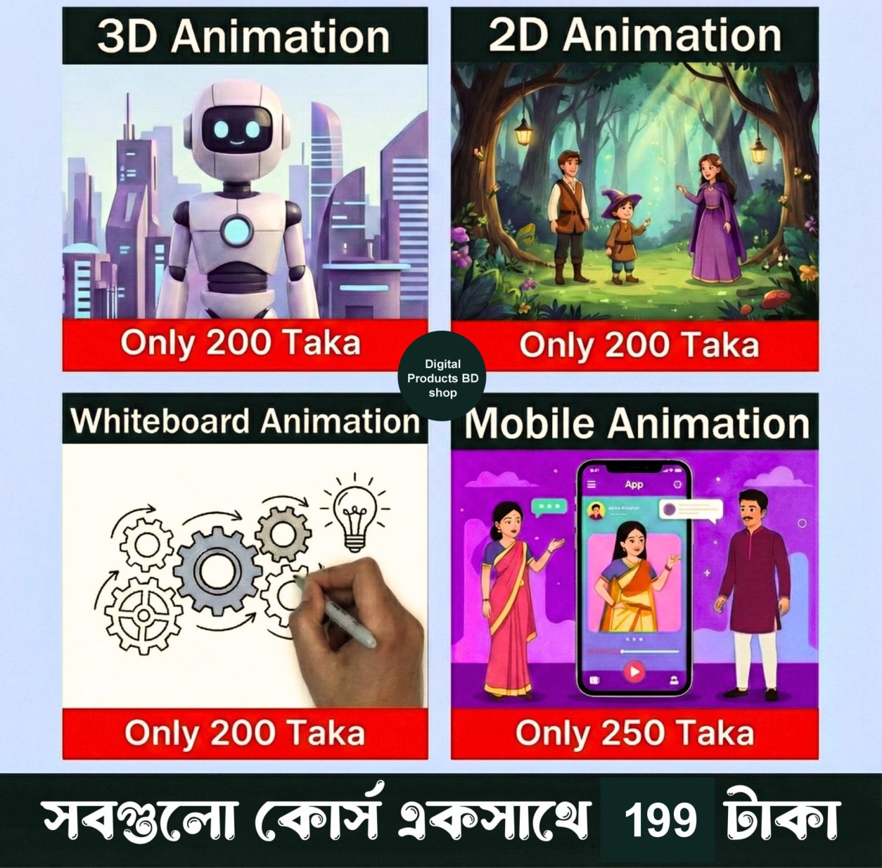 2D | 3D | Whiteboard | Mobile Animation সব কোর্স এক জায়গায়!